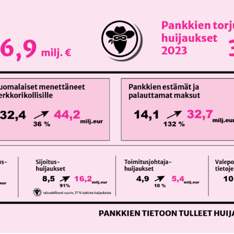 Huijareilla oli aktiivinen vuosi 2023 – Pankit saivat estettyä digihuijauksia lähes 33 miljoonan euron edestä Julkaistu6.2.2024 JOHANNES PALMGREN