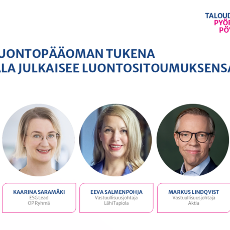 - Finanssiala ry:n (FA) Talouden pyöreässä pöydässä käsiteltiin finanssiyhtiöiden mahdollisuuksia torjua luontokatoa.