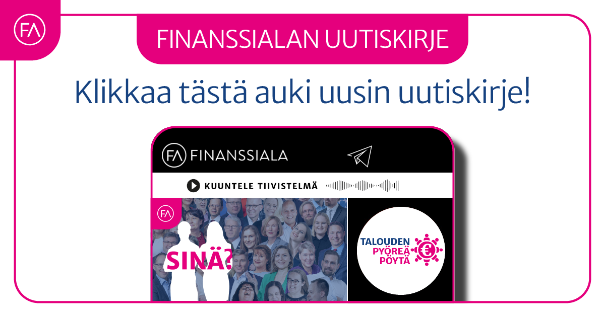 Finanssiala ry julkaisee Finanssialan Uutiskirjeen joka viikko. Uutiskirje tarjoaa tuoreimmat uutiset ja kannanotot finanssialalta, linkit viimeisimpiin lausuntoihin sekä sivuillemme lisättyyn uuteen materiaaliin. Uutiskirjeestä näet myös finanssialan avoimet työpaikat.